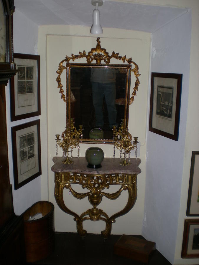 Consolle dorata con piano in marmo, epoca primi '800 ca. | Credenza in legno di noce, epoca metà '700 ca. |