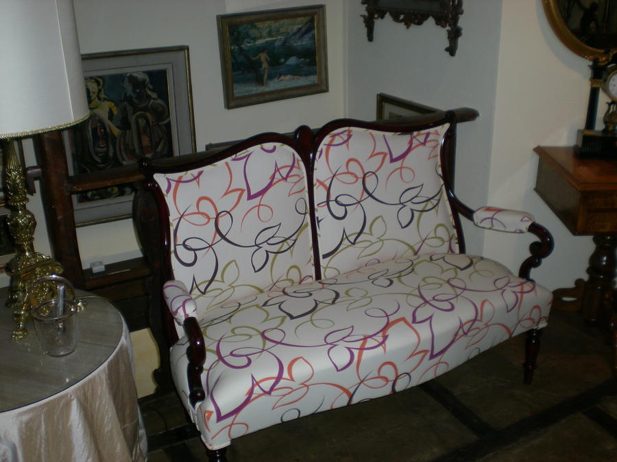 Panca in legno d'abete, epoca metà '800 ca. | Divano in legno di mogano, epoca metà '800 ca. |